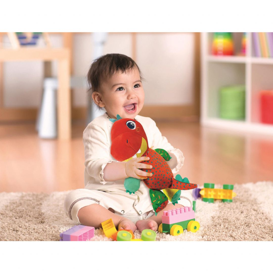 Söpö ja hauska dinosaurus hauskanpitoon ja viihdytykseen samaan aikaan! Keskipainiketta painamalla soi suloisia melodioita, jotka kannustavat puheeseen. Vastustamattoman söpö lelu, jota lapset voivat halata ja kantaa mukanaan koko ajan. Erilaiset kankaat ja helisevät osat stimuloivat vauvojen moniaistillista kehitystä. Lapset löytävät välittömästi yhteyden tähän suloiseen dinosaurukseen ja sen suloisiin kasvoihin, mikä rohkaisee heitä muodostamaan emotionaalisen yhteyden ja kehittämään rakkautta ja empatiaa. Paristot: 3 x AG13 (mukana). Suositellaan yli 6 kuukauden ikäisille lapsille.
