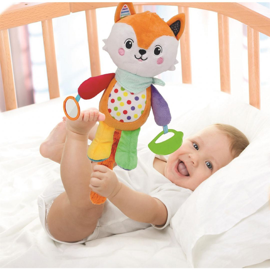 Tämä suloinen pikku kettu on suunniteltu yllättämään ja viihdyttämään vauvaasi, ja siitä tulee varmasti jokaisen lapsen paras ystävä. Pehmeä ja herkkien värien ansiosta tämä ihastuttava ja ystävällinen kettu on suunniteltu tukemaan leikkien ja tutkimisen varhaisimpia hetkiä. Ketulla on purulelu, pehmeä häntä, jossa on värinämoduuli vauvan yllättämiseksi, ja peili, joka tukee positiivisten tunteiden tunnistamista. Pehmeä kangas ja kaikki lisävarusteet tekevät lelusta rikastuttavan moniaistisen kokemuksen lapsellesi. Suunniteltu lasten ensimmäisten kehityskuukausien ajaksi. Moniaistillinen stimulaatio. Tukee tutkimista. Suositellaan lapsille 0 kuukauden iästä alkaen.
