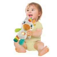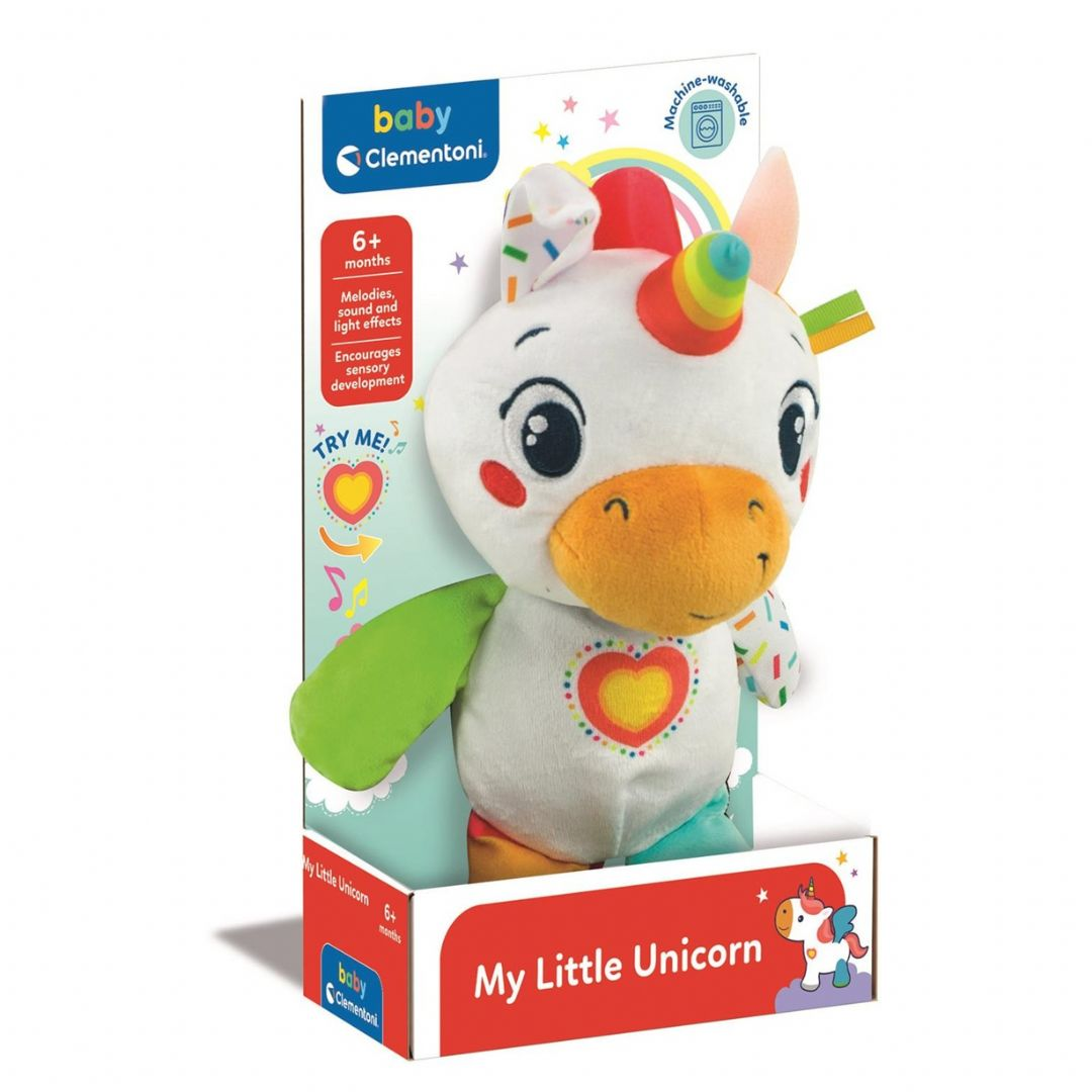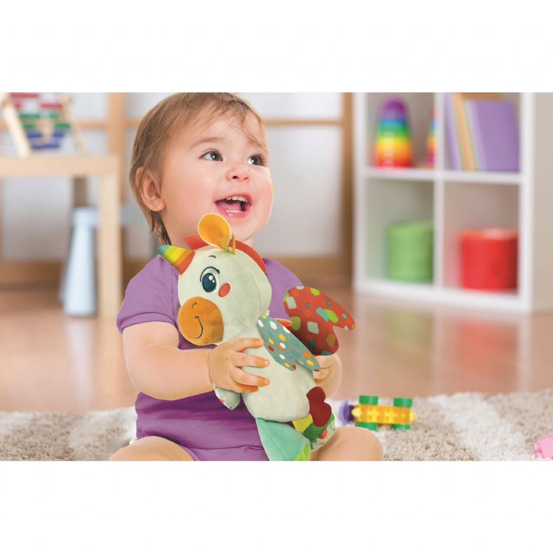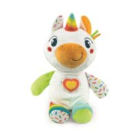Söpö yksisarvinen, joka tarjoaa hauskaa ja viihdettä! Keskipainiketta painamalla soitetaan suloisia melodioita, jotka kannustavat vauvoja puhumaan. Erilaiset kankaat ja helisevät osat stimuloivat vauvojen moniaistillista kehitystä. Rakastettava lelu, jota lapset voivat halata ja kantaa mukanaan koko ajan. Lapset saavat välittömästi yhteyden tähän suloiseen yksisarviseen ja sen suloisiin kasvoihin, mikä rohkaisee heitä muodostamaan emotionaalisen siteen ja kehittämään rakkautta ja empatiaa. Paristot: 3 x AG13 (sisältyvät pakkaukseen). Suositellaan yli 6 kuukauden ikäisille lapsille.