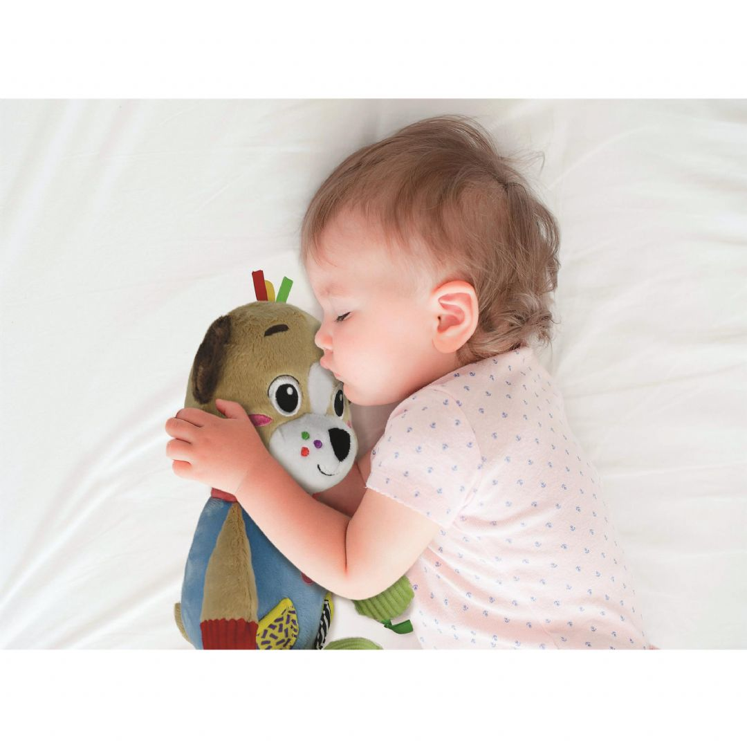 Erittäin pehmeä pehmolelu sopii pienille lapsille leikkeihin hellyyden ja turvallisuuden täyttämässä ilmapiirissä! Pehmolelu on valmistettu materiaaleista, jotka edistävät moniaistillista stimulaatiota ja aistien kehitystä elämän ensimmäisissä vaiheissa. Pehmolelun lahjapakkaus on suunniteltu kirkkailla väreillä ja sitä voidaan käyttää myös koiran juoksupuistona. Pehmeässä pehmolelussa on pureskeltava lisävaruste, joka on suunniteltu hampaiden puhkeamisvaiheeseen. Konepestävä.