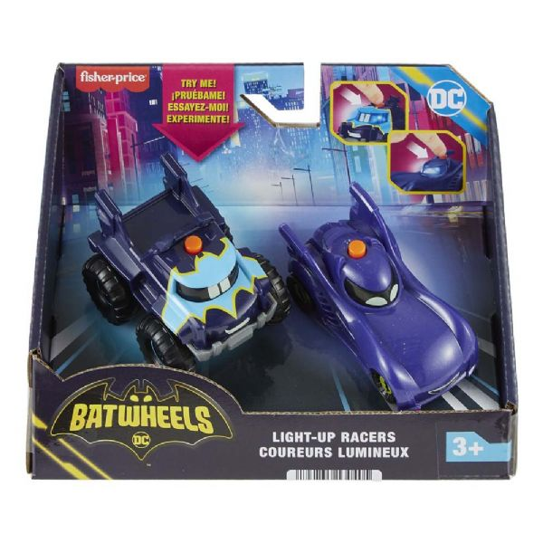 DC:n Batwheels-sarjan fanit voivat laukaista itseään ja syöksyä omiin jännittäviin kilpa-ajoseikkailuihinsa näillä Fisher-Pricen® Batwheels™-leikkiautosettien avulla. Jokainen setti sisältää 1:55-mittakaavan ajoneuvon, jossa on aito Batwheels™-hahmodesign, sekä aktivointiavaimen ja törmäystarvikkeen. Esikoululaiset rakastavat avaimen asettamista ajoneuvoon ja sen lentämistä täydellä vauhdilla!