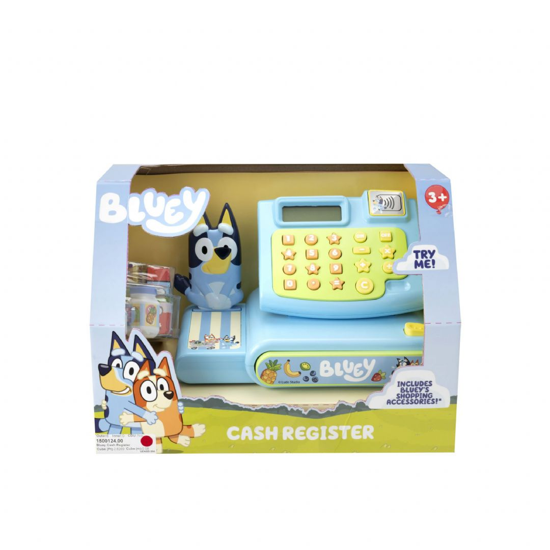 Valmistaudu paljon hauskoihin ja opettavaisiin roolileikkeihin värikkään Bluey-kassakoneen ja tarvikkeiden kanssa! Suositun lasten universumin Blueyn inspiroimana lapsesi voi nyt avata oman kauppansa ja toivottaa tervetulleiksi asiakkaita – ehkä jopa itse Blueyn!