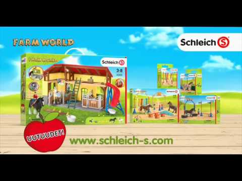 Uusi värikäs Schleich-hevostalli tarjoaa monia leikkimahdollisuuksia, joiden parissa lapset viihtyvät pitkään! Sillä seitsemän suloisen eläimen, kahden hevoskarsinan, Paul-isännän ja Laura-emännän sekä luonnollisesti monien eri tarvikkeiden avulla on helppo leikkiä tilan päivittäisiä töitä. Kun Laura valmistautuu ratsastusretkelle, Paul nostaa vinssillä uutta rehua heinävintille. Heinäpaalien siirtäminen liikkuvien kuljetusrullien avulla ruokintaluiskaan on helppoa ja kevyttä, sillä ruokintaluiskasta paalit tippuvat suoraan kottikärryihin. Ruokintataulusta voi tarkistaa vaihe vaiheelta, mitä eläinten on kulloinkin saatava. Onkohan Paul vielä huomannut hiirenkolossa istuvaa suloista hiirtä?