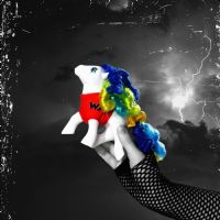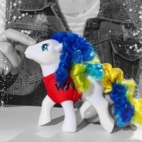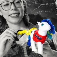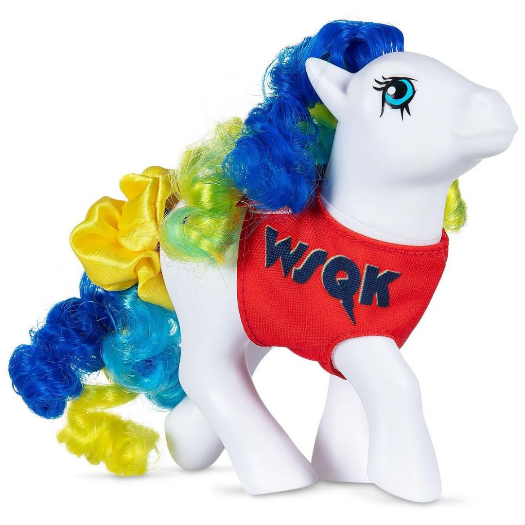 Rohkean punaiseen WSQK-logo-t-paitaan, kirkkaankeltaiseen hiusdonitsiin ja klassisiin 80-luvun säärystimiin pukeutunut poni tuo radioasematunnelmaa ja menneiden aikojen tunnelmaa mihin tahansa seikkailuun. Sen harja on täynnä villejä, pomppivia sinisiä kiharoita, joita voi muotoilla mukana tulevalla kuulokkeiden muotoisella kammalla, ja salaperäinen Squawk-suloisuusmerkki viimeistelee sen.