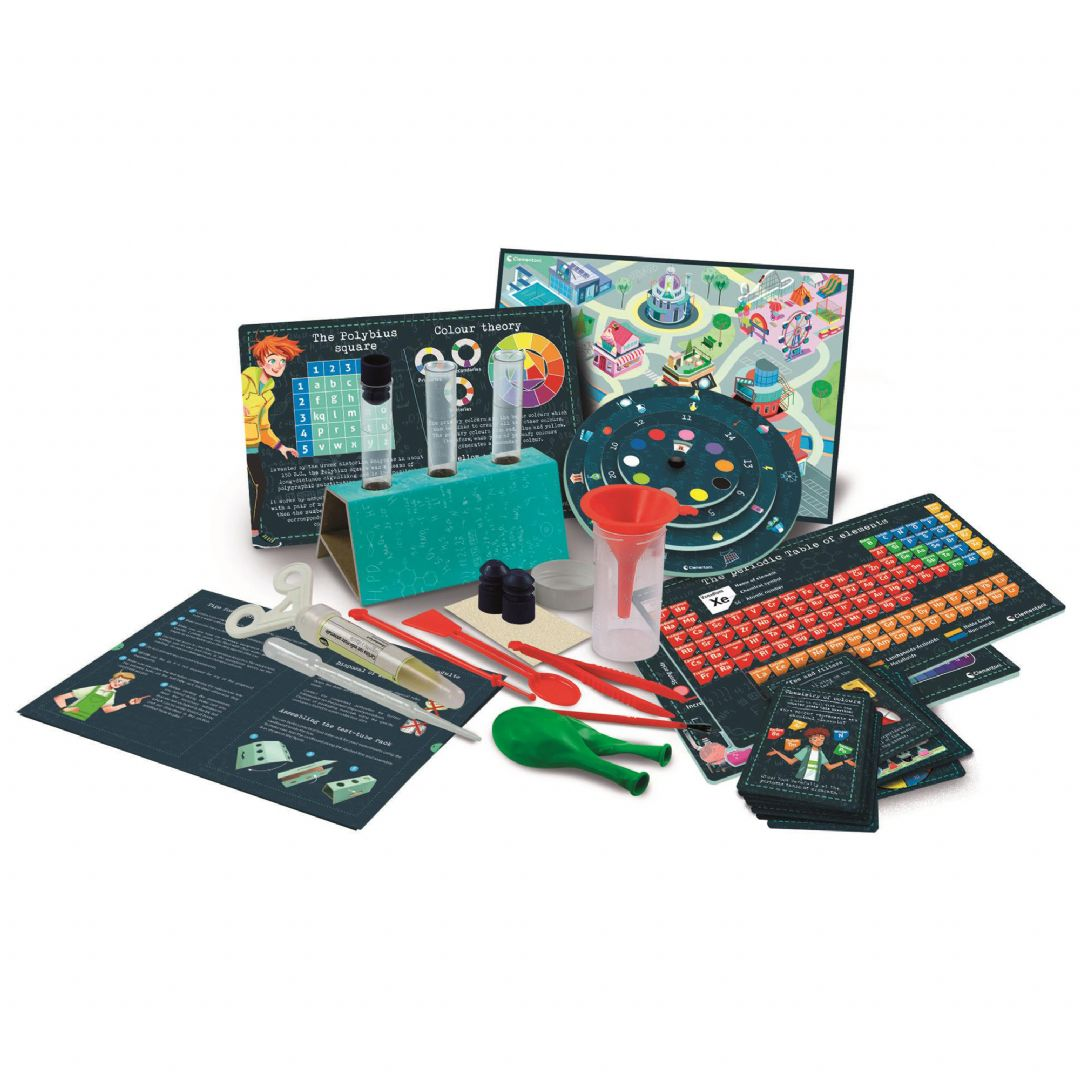 Tieteestä tuli juuri hauskempaa tämän erikoissetin myötä, joka on puoliksi tieteellinen ja puoliksi mystinen! Aivan kuten oikeat tutkijat, lapset pääsevät seikkailuun ja heidän on ratkaistava pulmallisia tilanteita ja löydettävä vihjeitä. Setti sisältää kaiken tarvittavan PH-kokeisiin lakmuspaperilla, seoksilla ja suodattimilla. Pieni suppilo, suodatinpaperi, lasta ja paljon muuta sisältyvät settiin. Voit jopa käyttää erityistä pahvista salauksen avaamiseen tarkoitettua kiekkoa apunasi vihjeiden tulkitsemisessa. Tämä setti auttaa lapsia terävöittämään mieltään ja tutustuttaa heidät kemian periaatteisiin helpolla, hauskalla ja erittäin mukaansatempaavalla tavalla! Yhdistää oppimisen ja leikin. Auttaa kehittämään kätevyyttä. Suositellaan yli 8-vuotiaille lapsille.