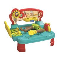Montessori-aktiviteettipöytä erilaisten työkalujen kanssa leikkimiseen. Vasara, ruuvimeisseli ja paljon tarvikkeita, kuten nauloja ja aluslevyjä. Käännä pyörösahan käsikampea ja aktivoi hammaspyörien mekaaninen liike – saat aikaan todellisen vau-efektin! Täydellinen Montessori-tyylinen aktiviteettipöytä käden taitojen, keskittymiskyvyn ja loogisen p...